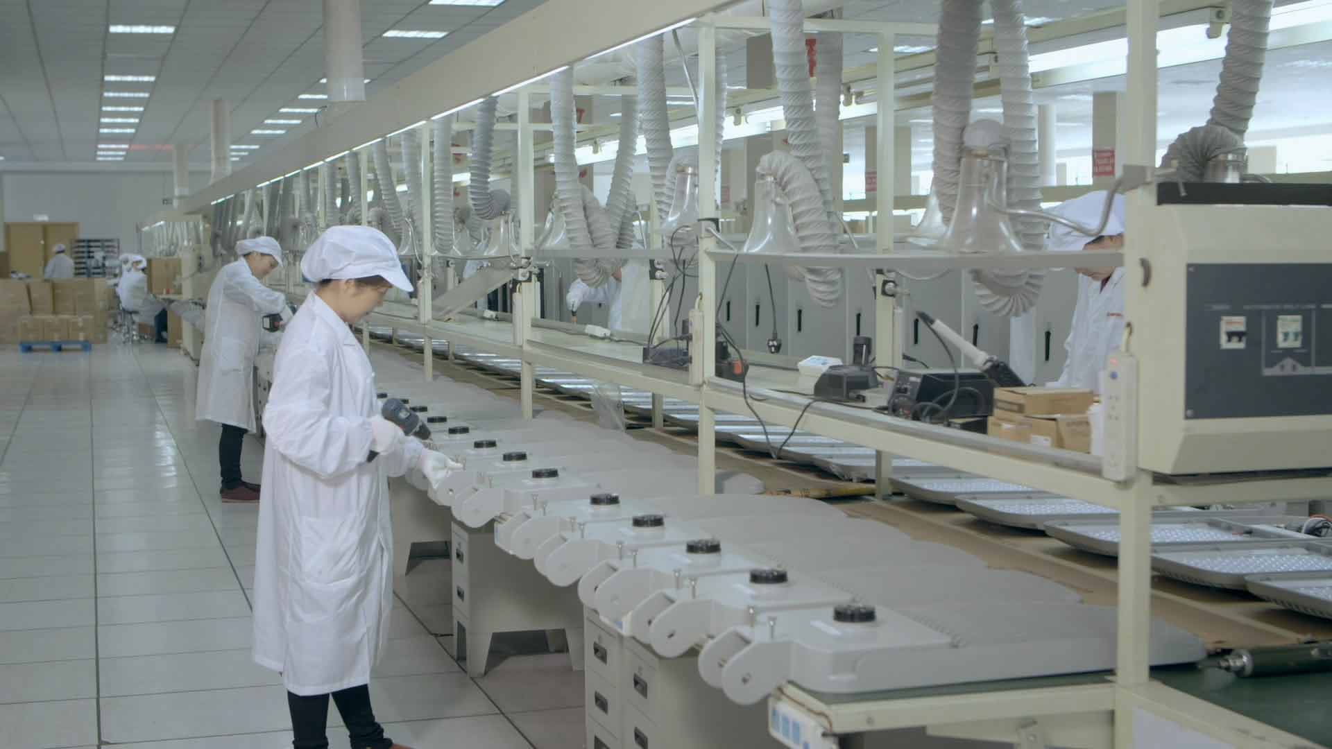 公司擁有4條自動(dòng)化生產(chǎn)流水線,同時(shí)還引進(jìn)了數(shù)控插件機(jī)、自動(dòng)化波峰焊、成套的光學(xué)指標(biāo)檢測(cè)設(shè)備及電子電氣指標(biāo)檢測(cè)設(shè)備,建立起先進(jìn)的規(guī)范化工藝流程、智能化生產(chǎn)運(yùn)作體系。
