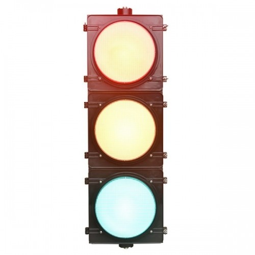 300三聯塑殼機動車燈 , 燈芯采用菲涅爾透鏡和配光燈罩,光源采用3W大芯片LED,光學配光,具有視角好、亮度均勻、色譜標準、功耗低、壽命長等特點,在烈日及濃霧條件下,更顯其優點。產品已獲得國家發明專利,專利名稱(大功率LED信號燈),專利號 ZL 2012102644911。